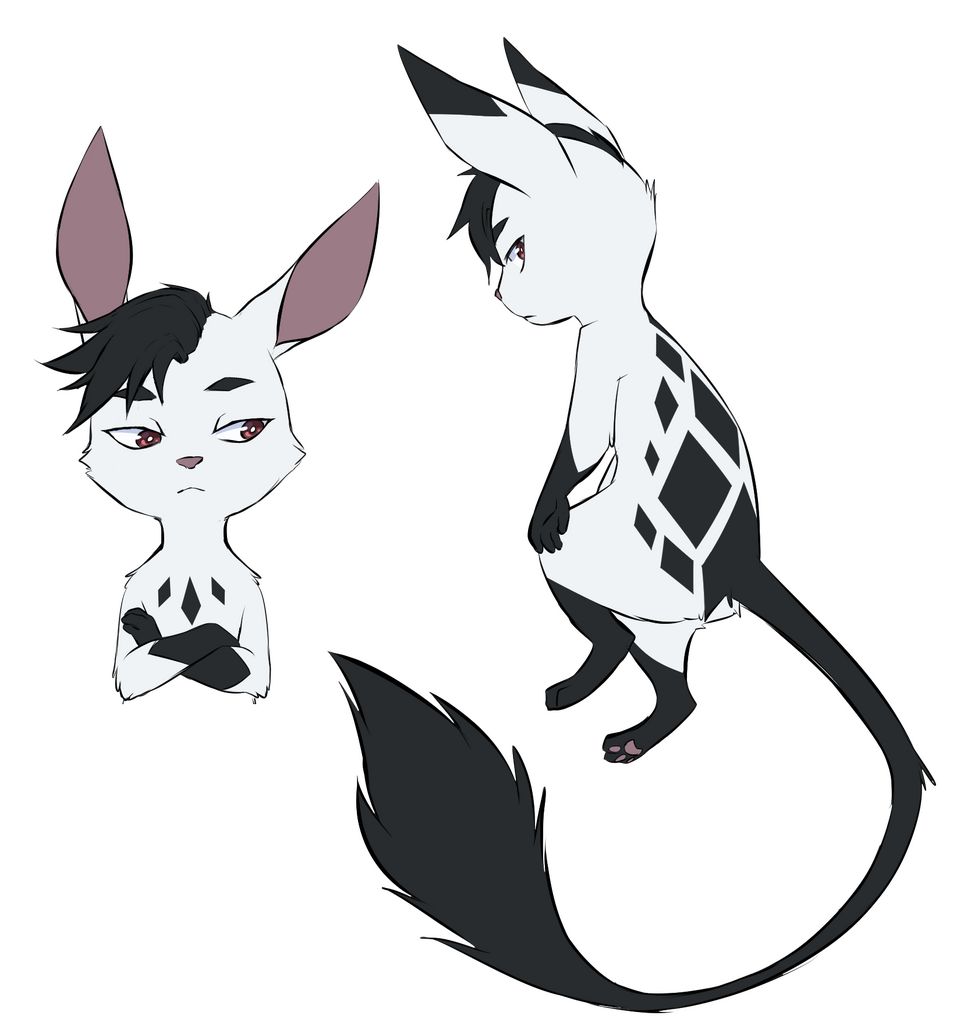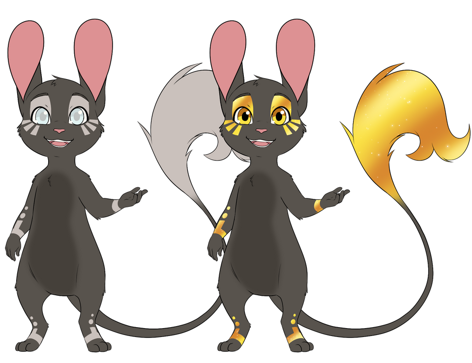 Kan’vi have short, bipedal, mouse-like bodies with tall ears, flat cat-like faces and sharp fanged teeth. Their long tails are prehensile and capable of curling around and picking up small objects.